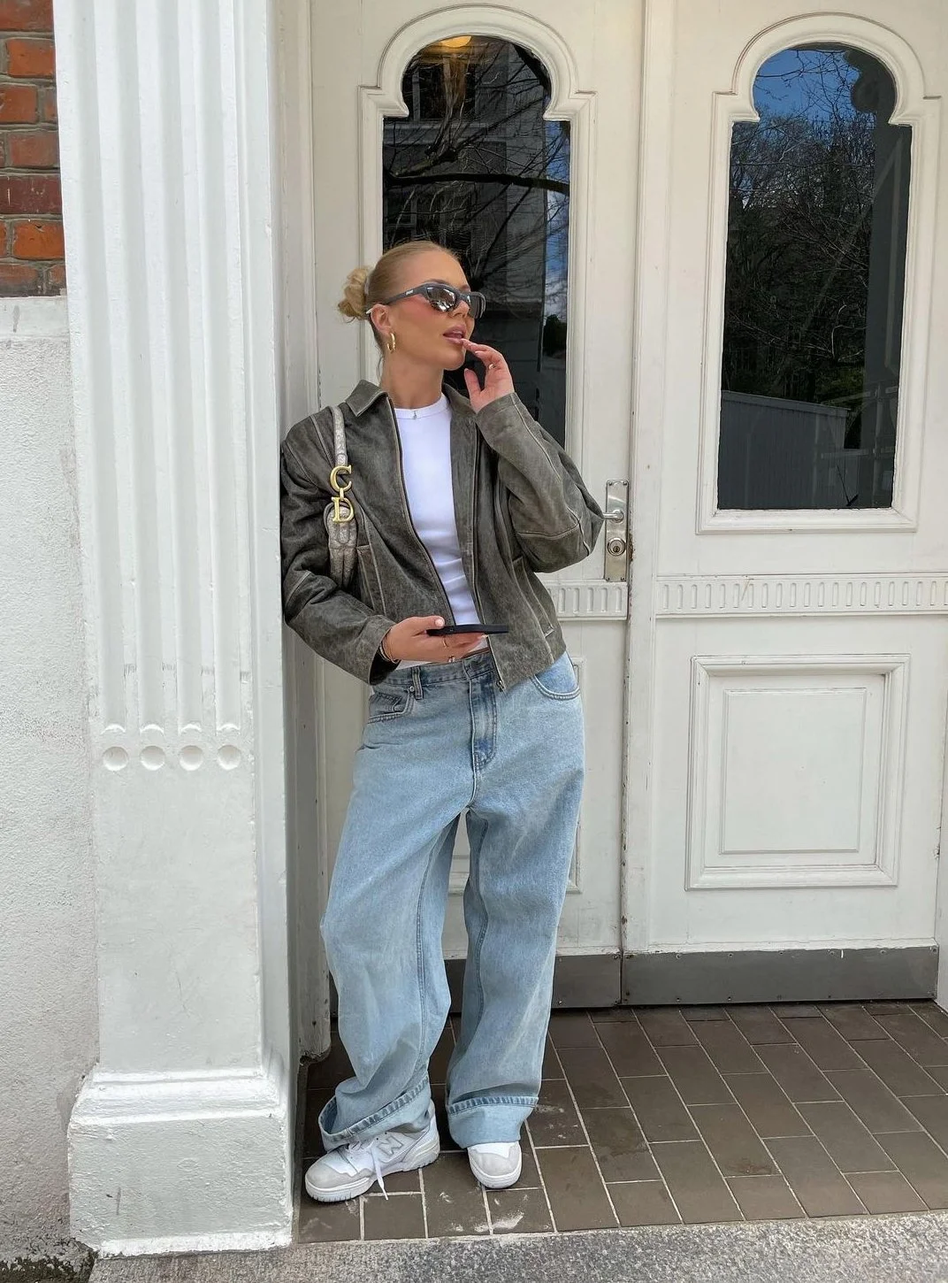 New York fashion girls love to start their day with an iced latte while wearing an easy but chic outfit. A white tee paired with denim shorts, a cropped cardigan, and mary janes is a perfect look that can take you from morning to afternoon.